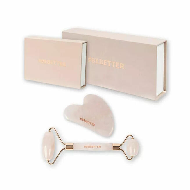 Zestaw Roller do masażu + Kamień Gua Sha nowy nie używany Roller do masażu twarzy #BeBetter Różowy Kwarc Wałek ...
