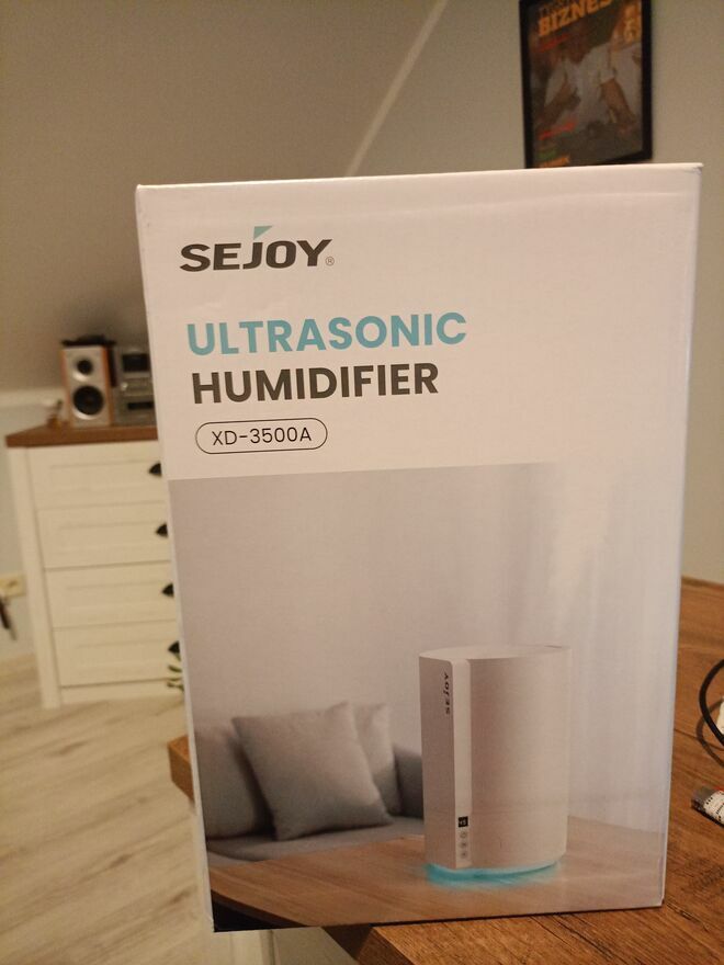To jest ultradźwiękowy nawilżacz powietrza Sejoy XD-3500A.Urządzenie wykorzystuje technologię ultradźwiękową do cichego generowania chłodnej mgiełki.