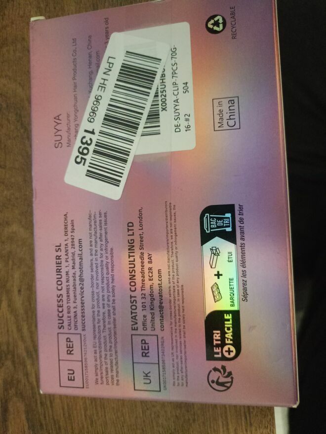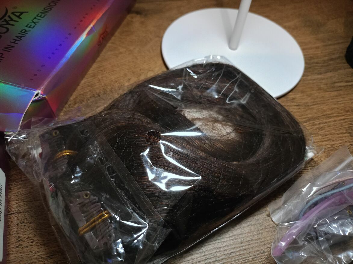 Produkt na zdjęciu to pudełko z doczepianymi włosami marki SUYYA. Zgodnie z informacją na opakowaniu, są to doczepiane włosy "clip in" wykonane z 100 % z n naturalnych ludzkich włosów. Produkt nowy nierozpakowany. Cena 100 zł. Dostępne 2 opakowania.Rafał